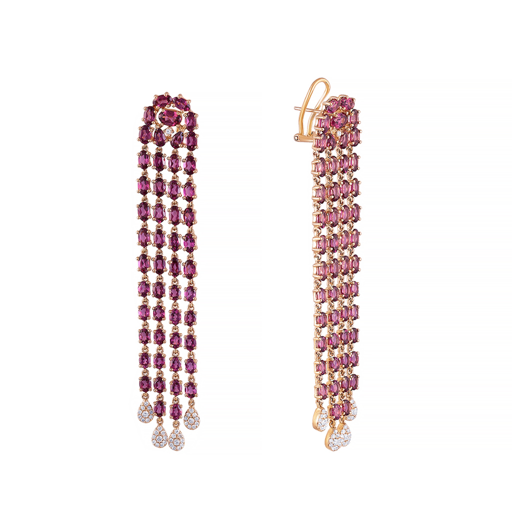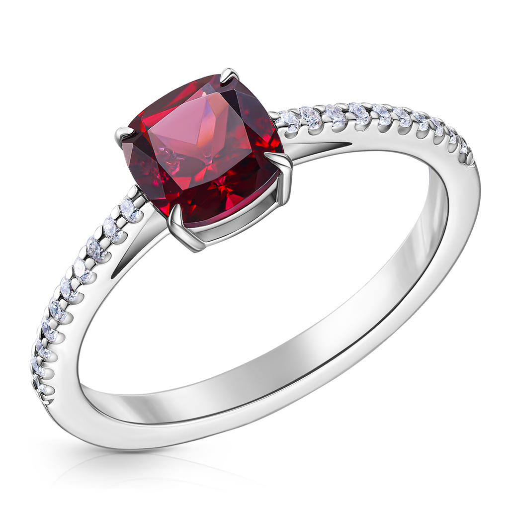- Кольца с родолитом часто инкрустируются бриллиантами, что добавляет внушительный блеск.