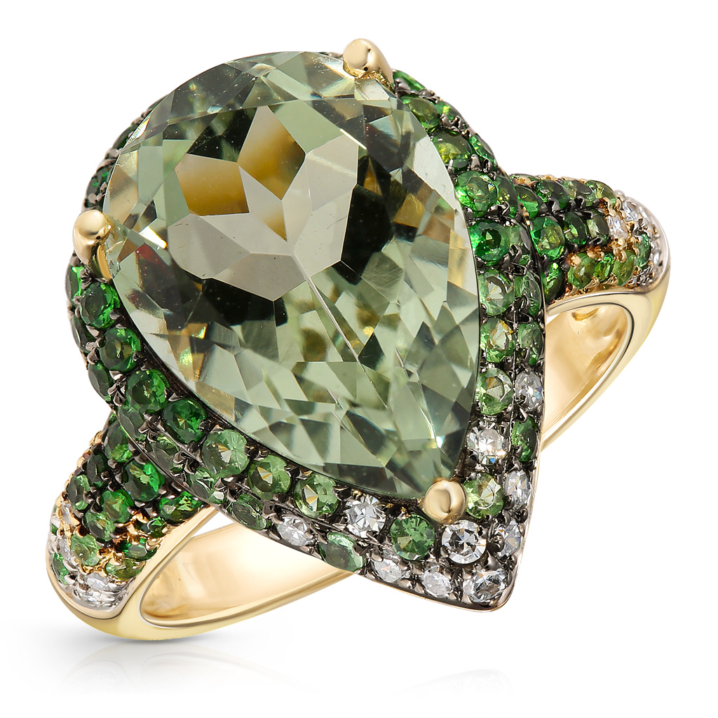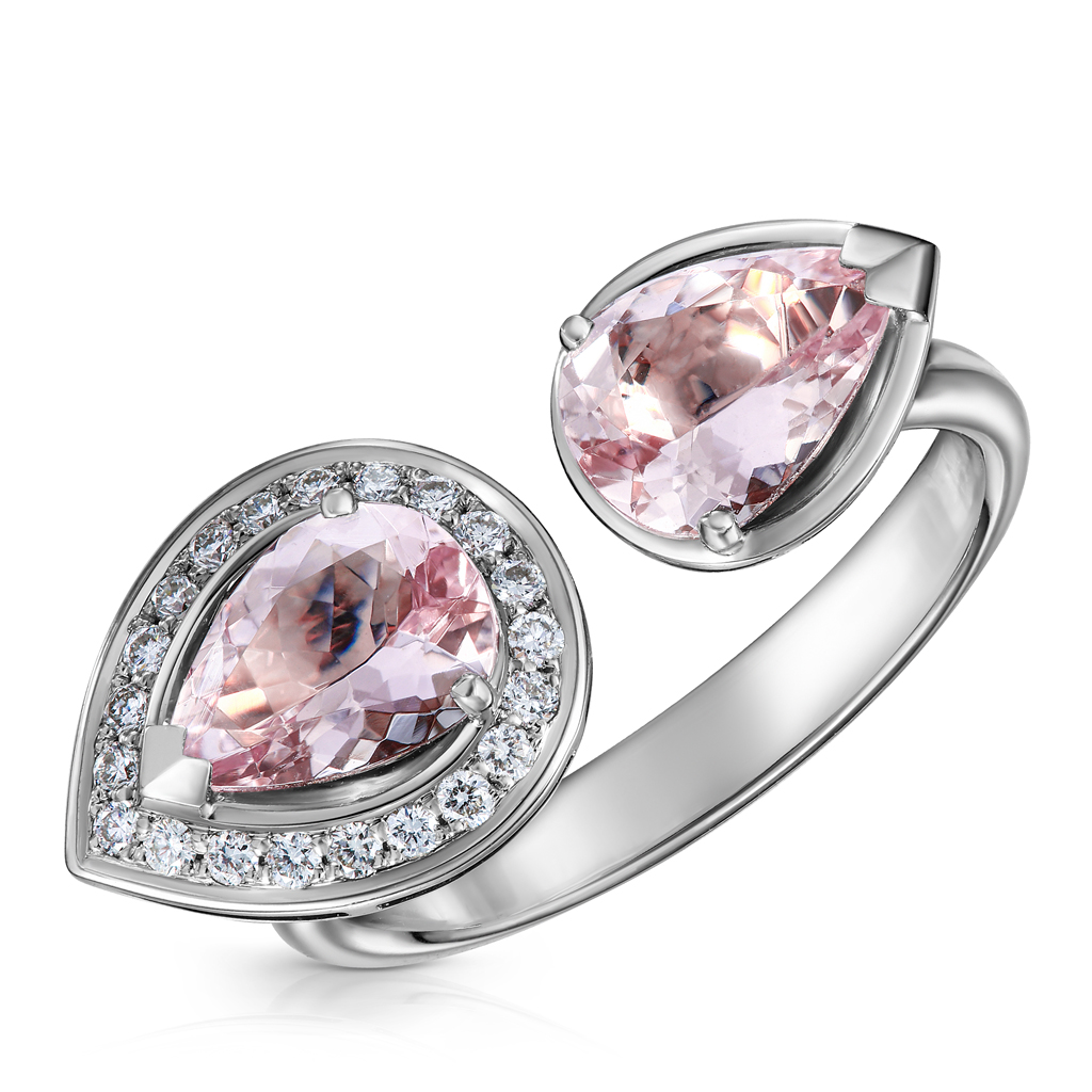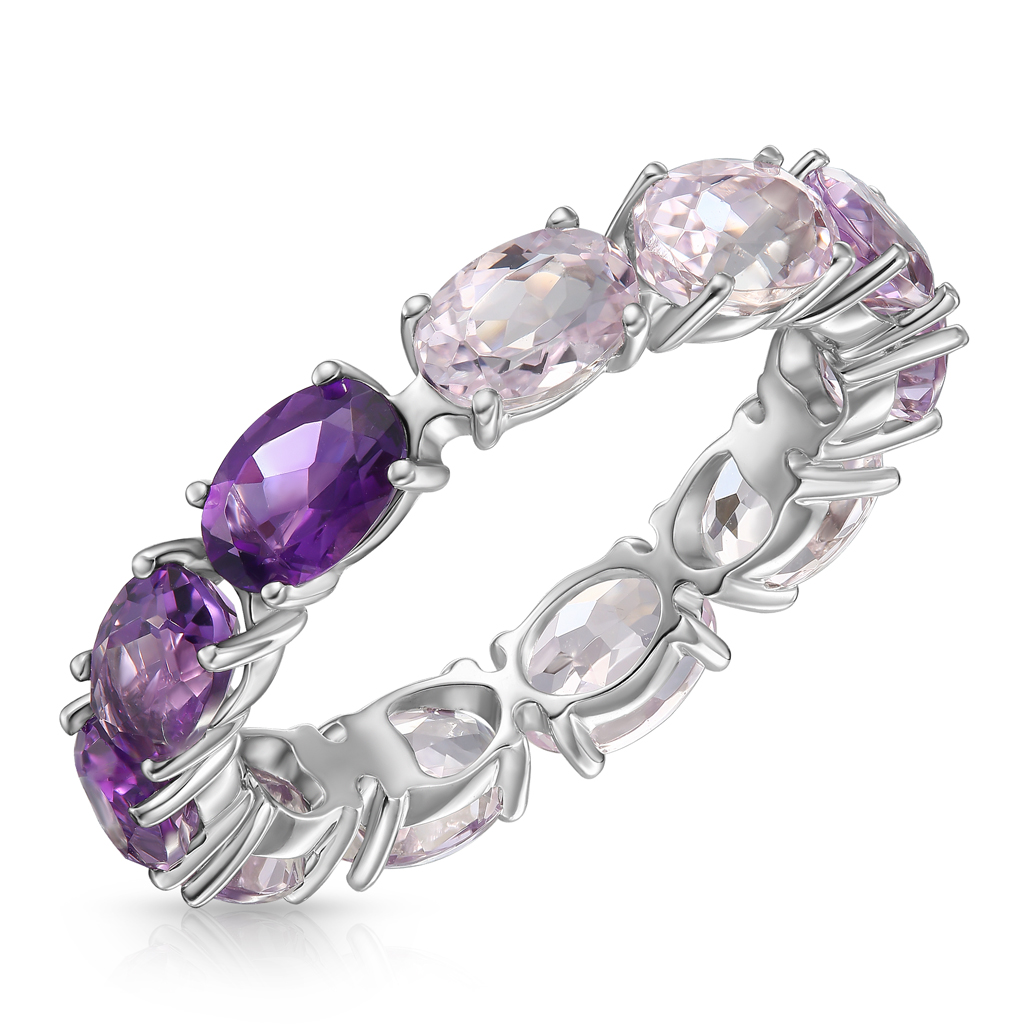 Кольцо из белого золота с кунцитами, аметистами, аметистами