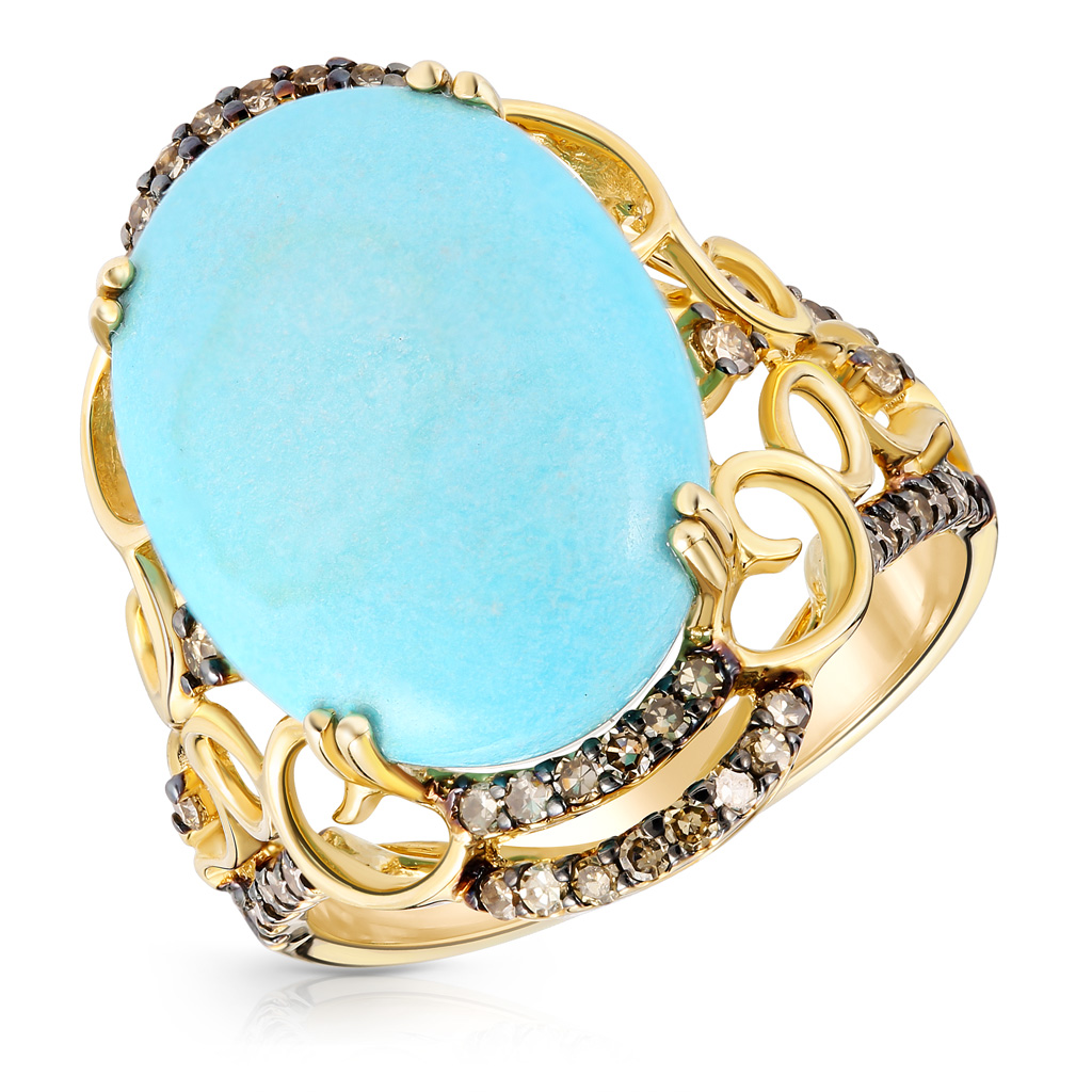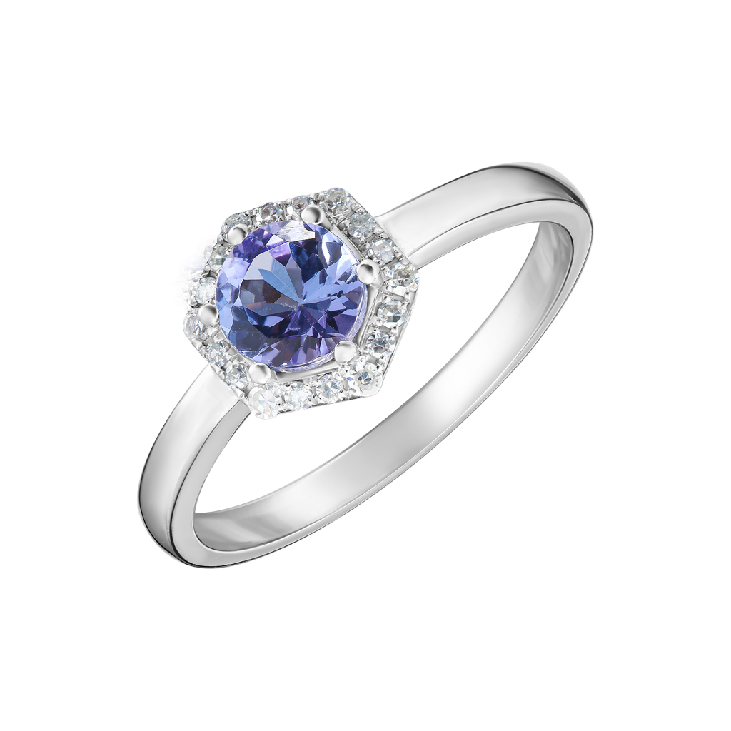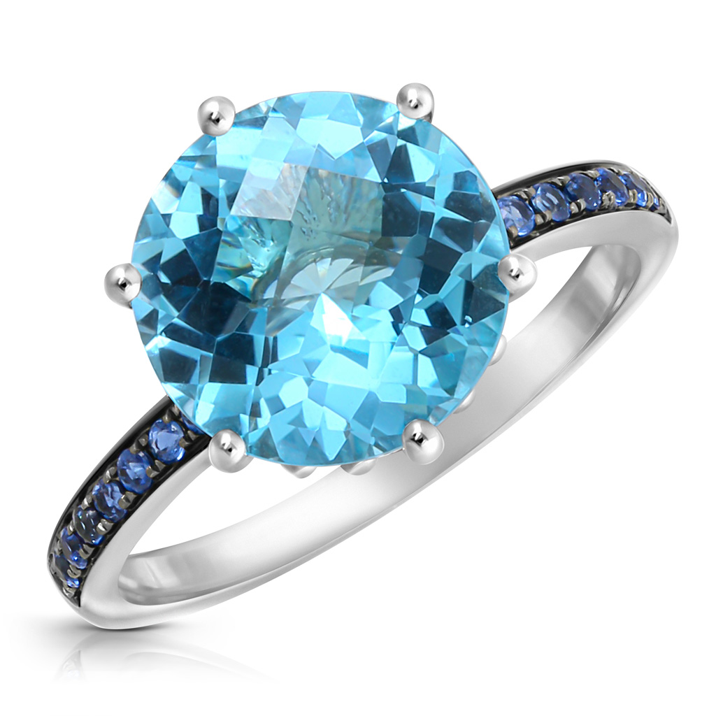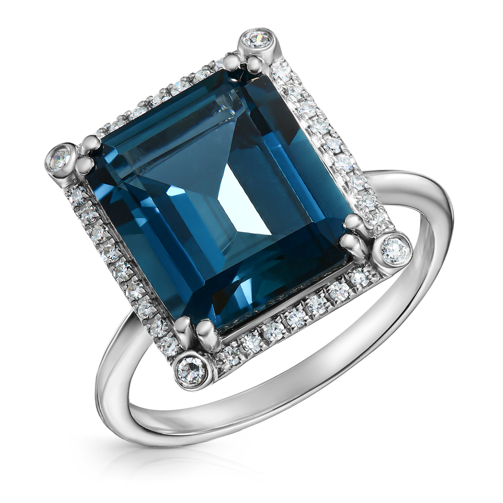 Кольцо из белого золота с бриллиантами, сапфирами, топазом