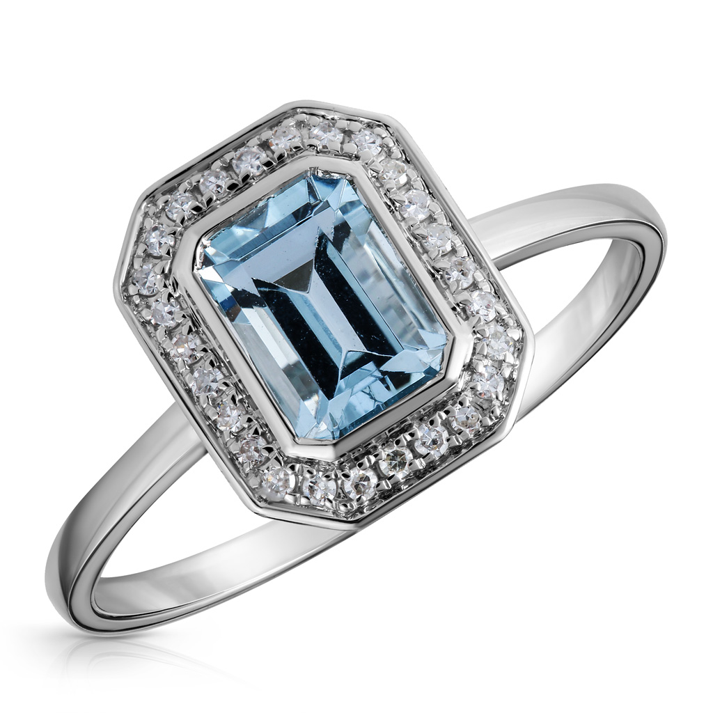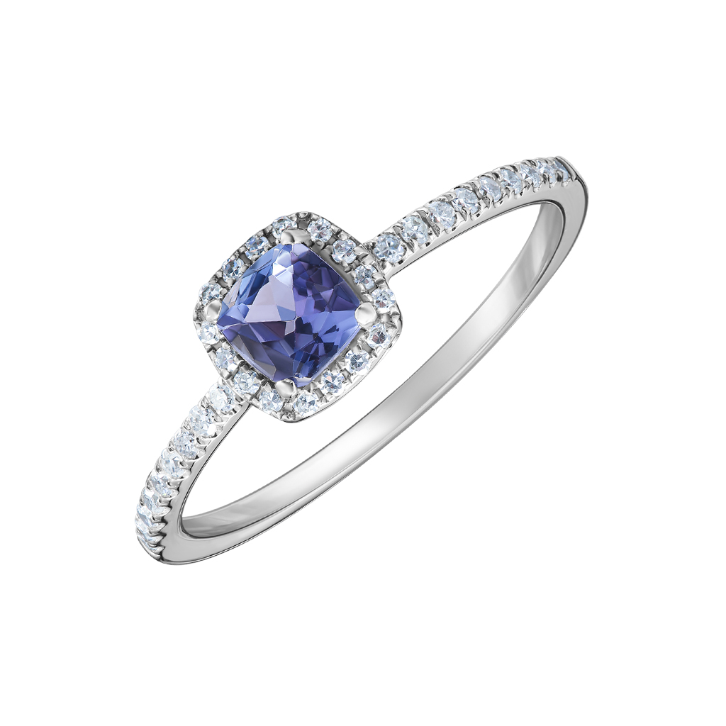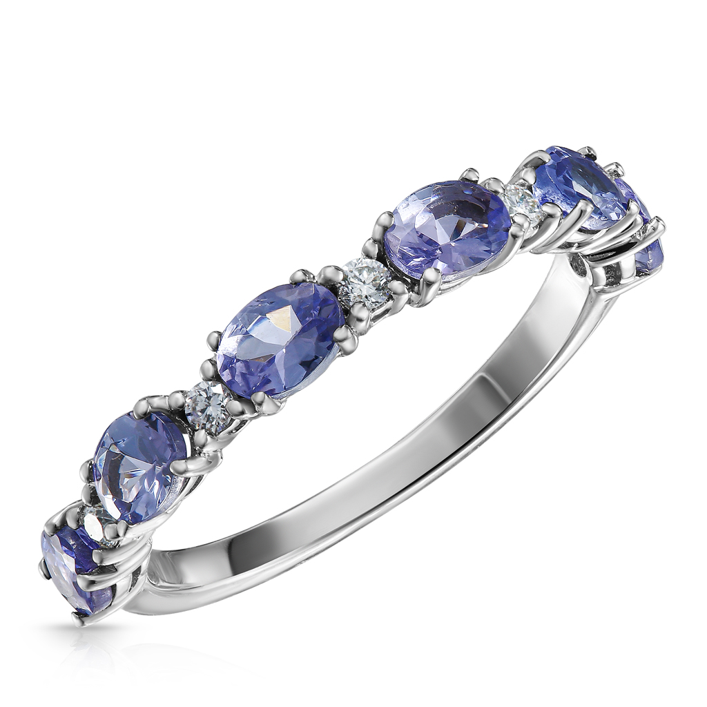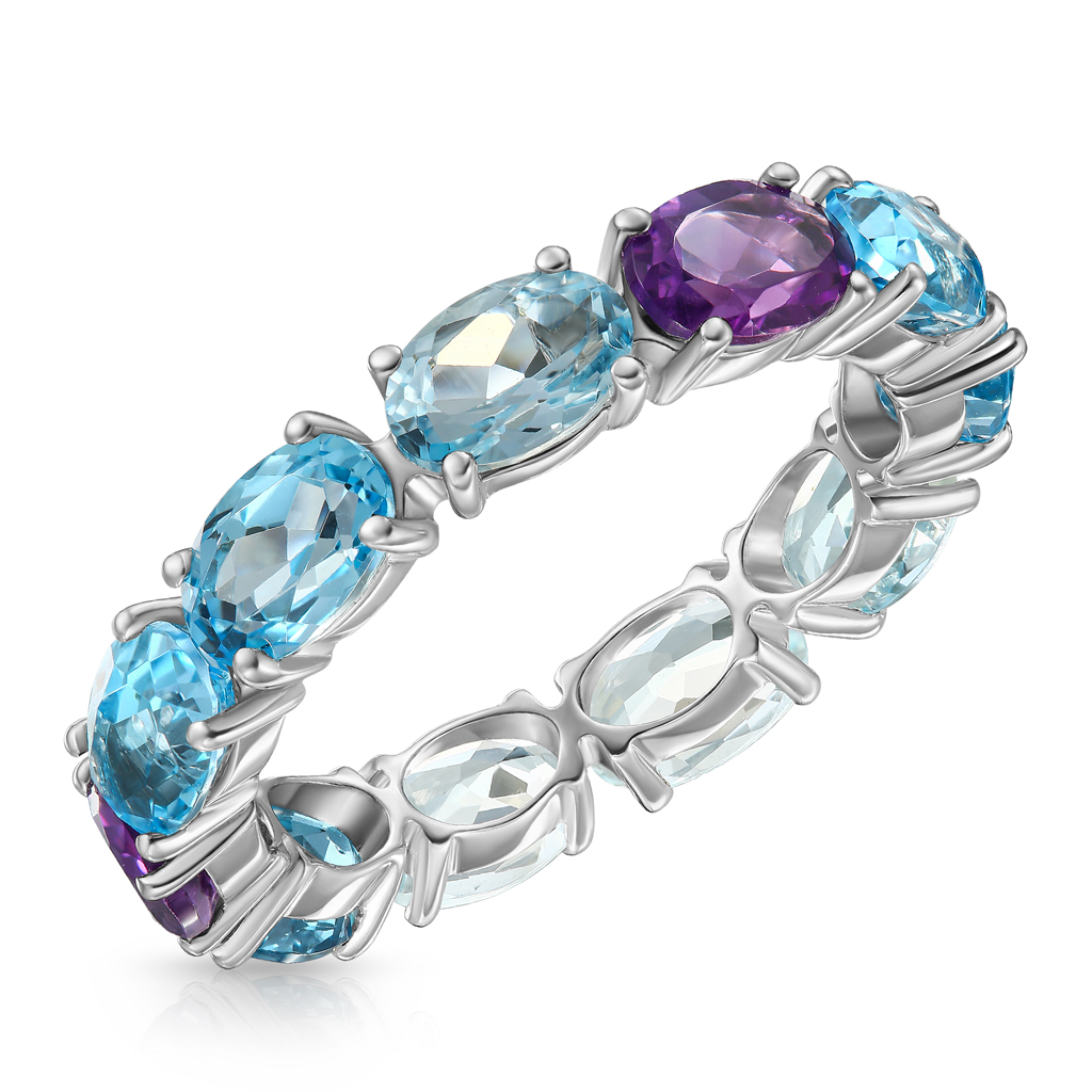 Кольцо из белого золота с топазами, аметистами, аквамаринами