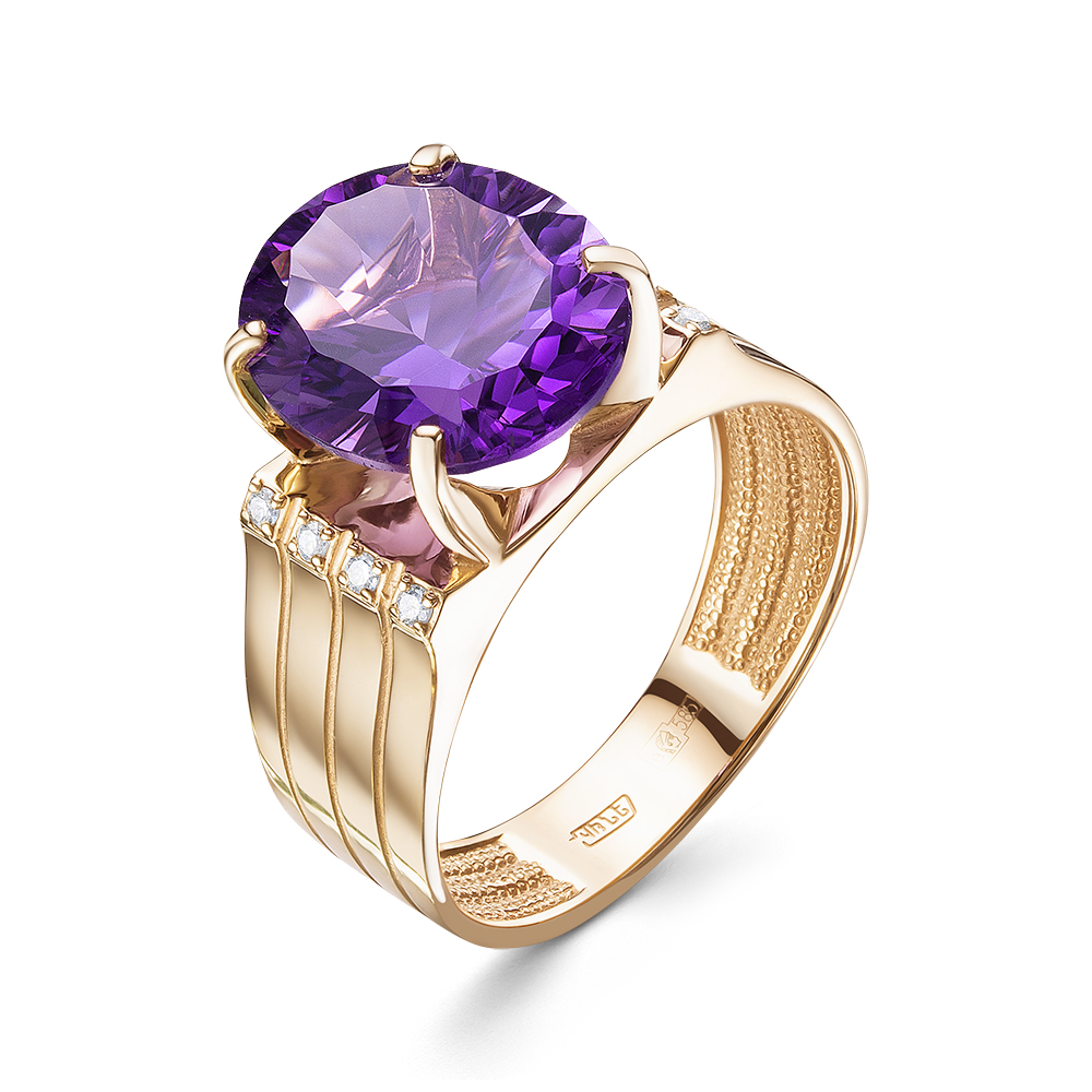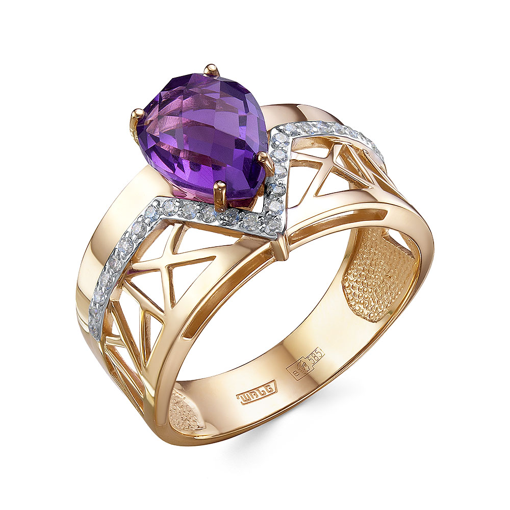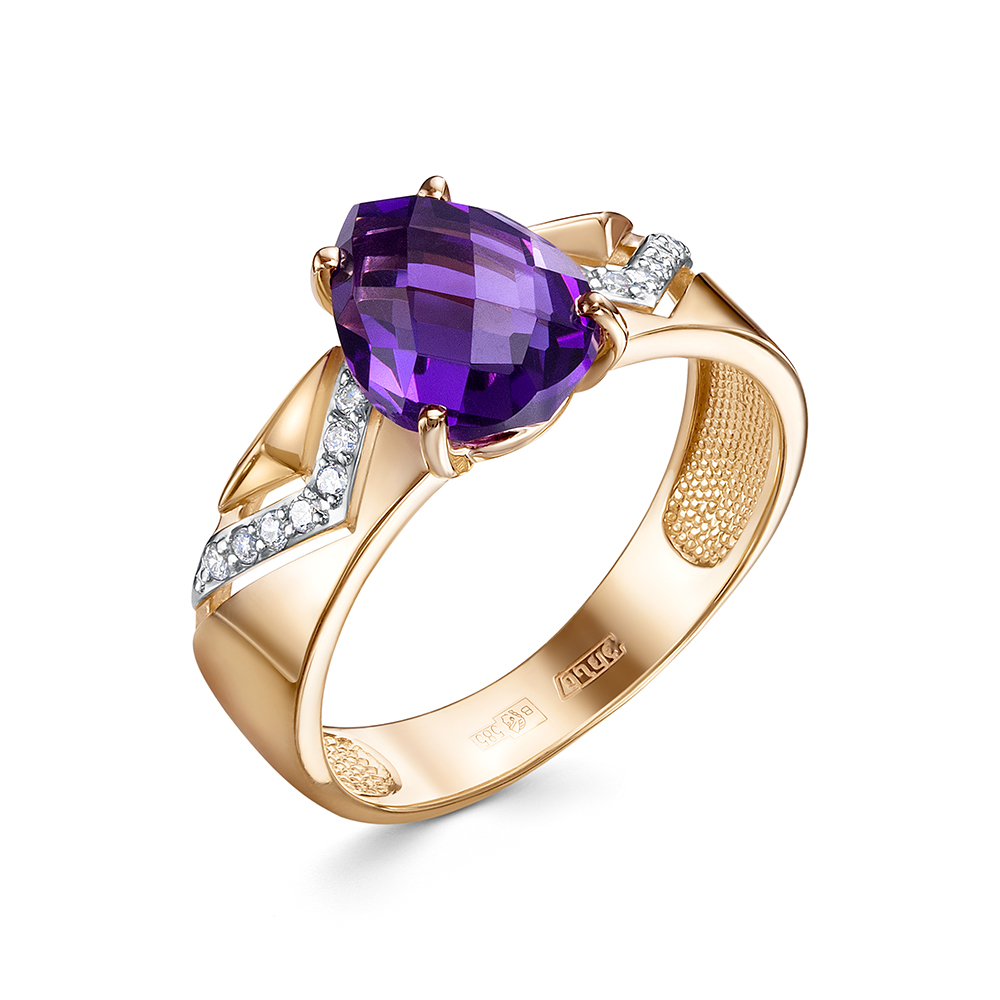 Кольцо из комбинированного золота с аметистом, бриллиантами