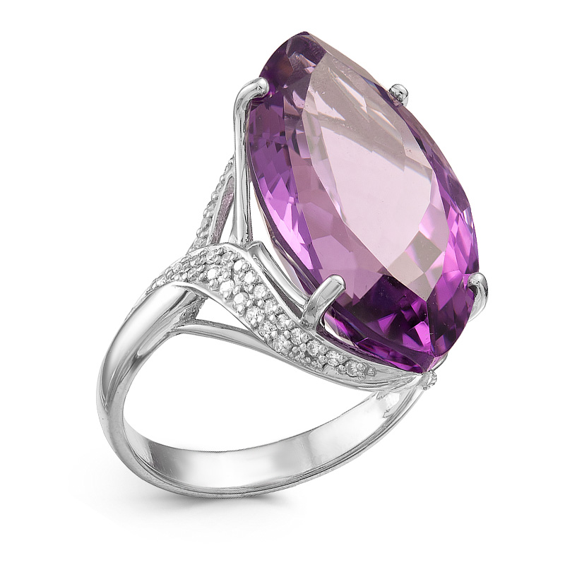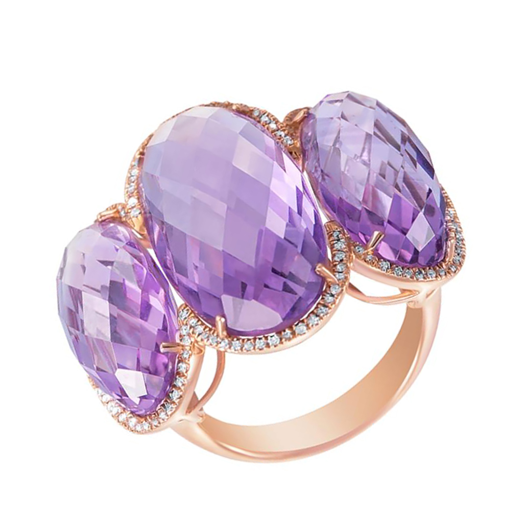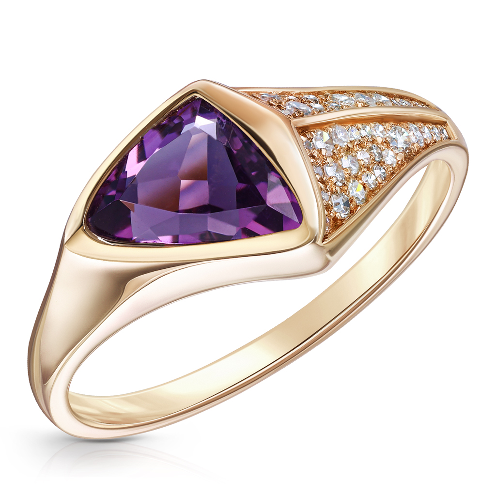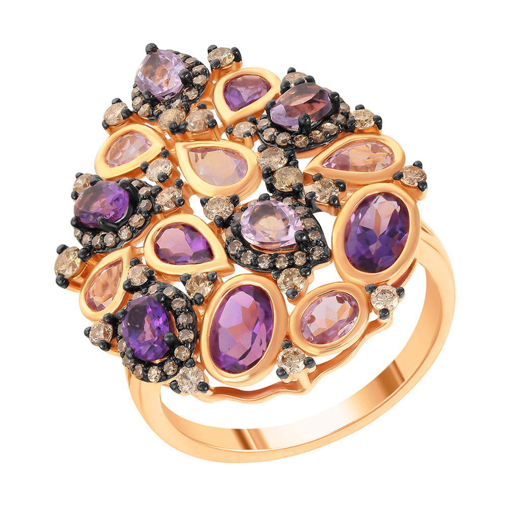 Кольцо из комбинированного золота с аметистом, бриллиантами