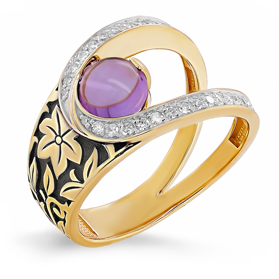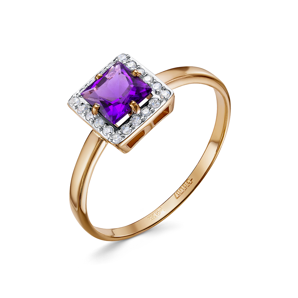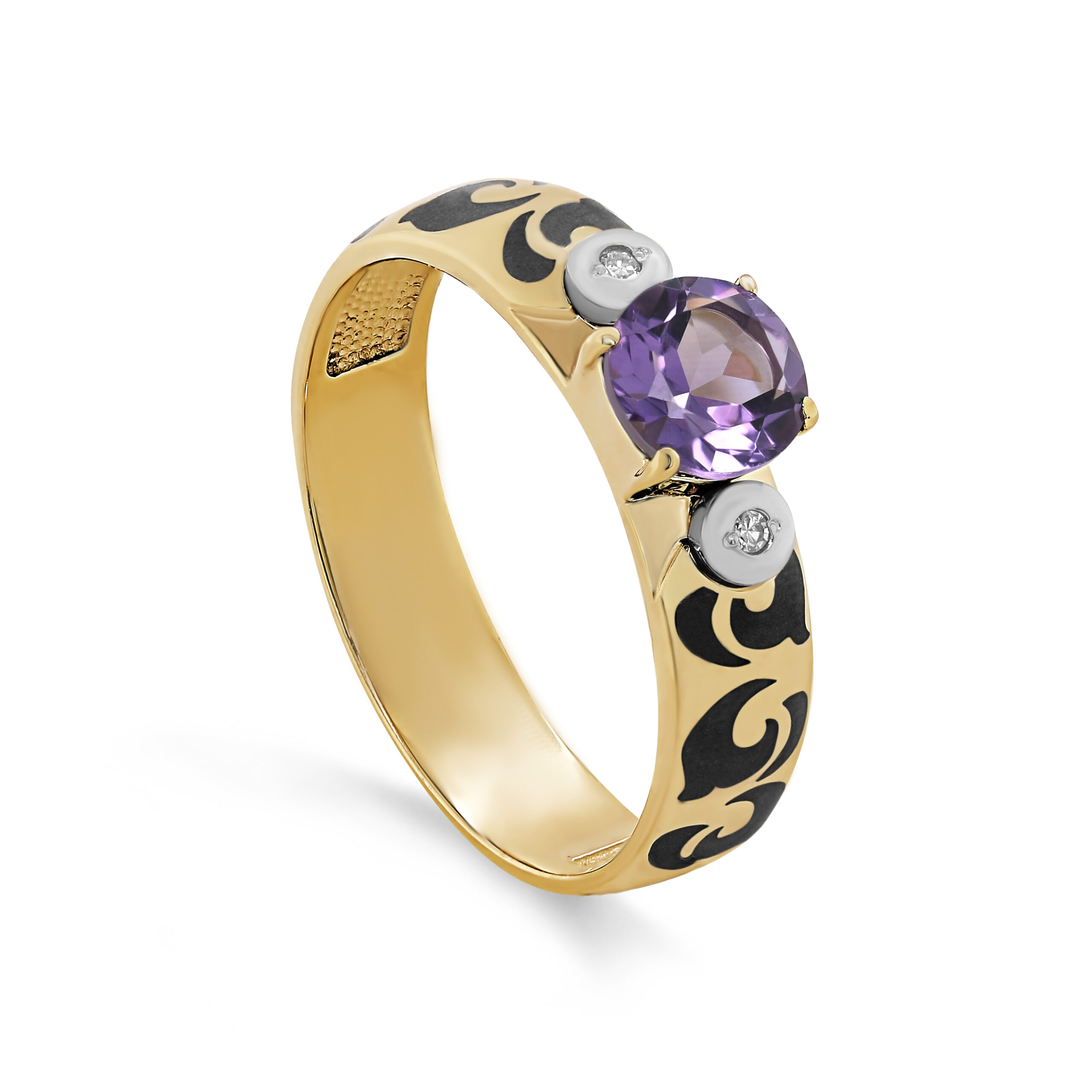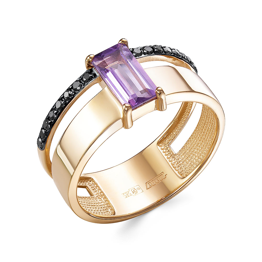 Кольцо из комбинированного золота с бриллиантами, аметистом