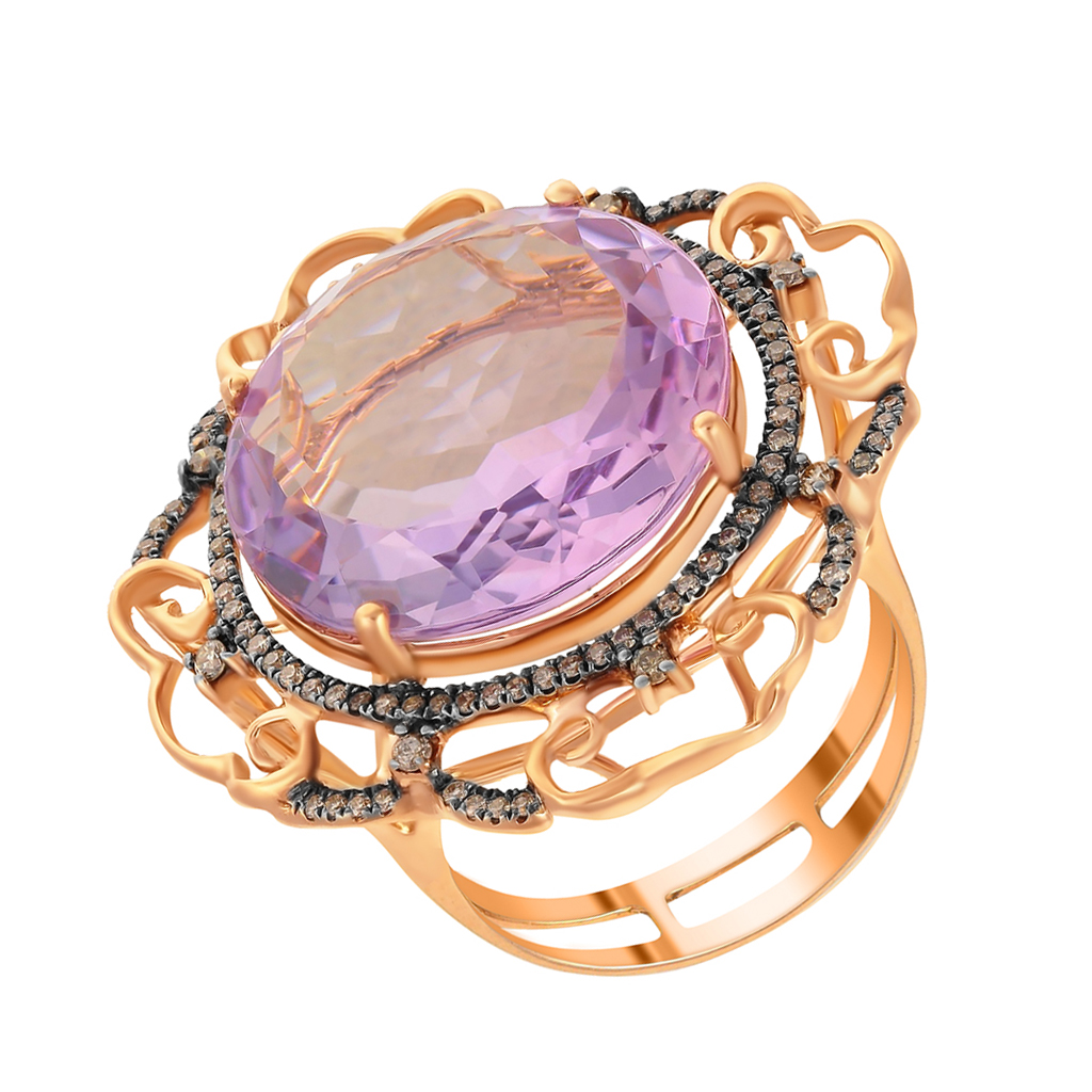 Кольцо из красного золота с аметистом, бриллиантами