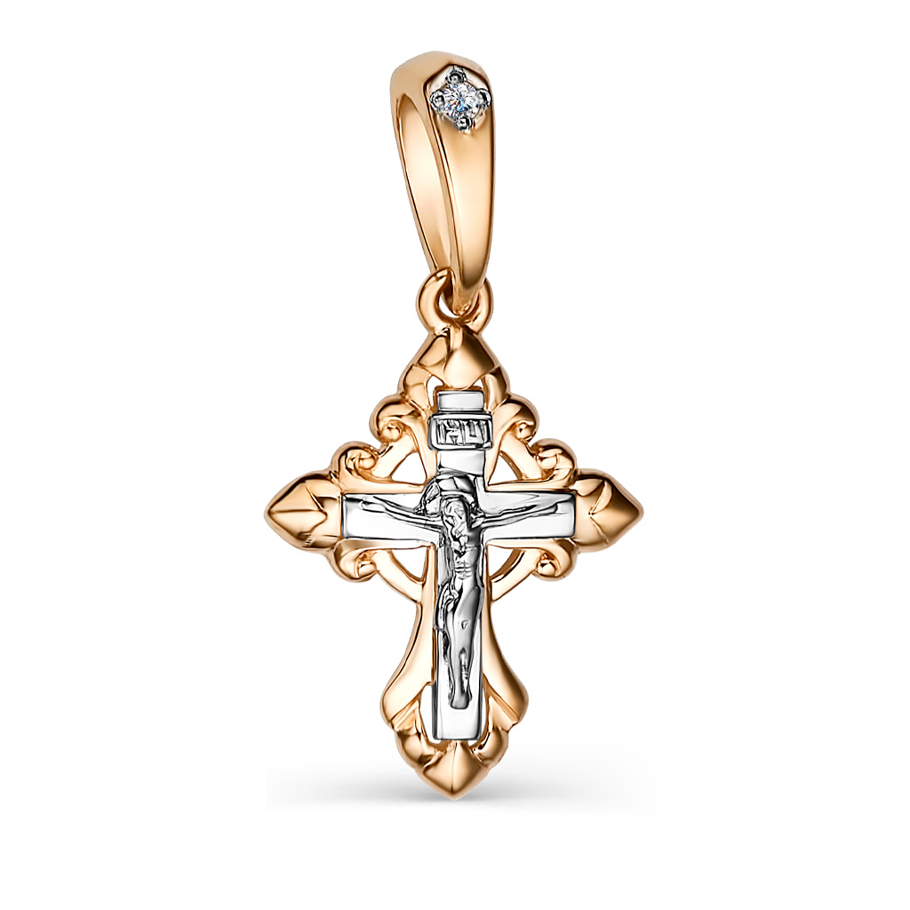 Крест из комбинированного золота с фианитом