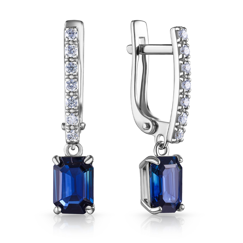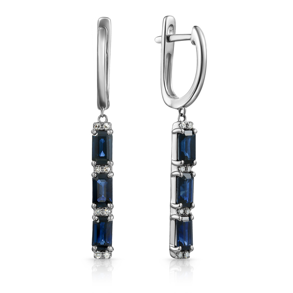Серьги с английским замком из белого золота с бриллиантами, сапфирами