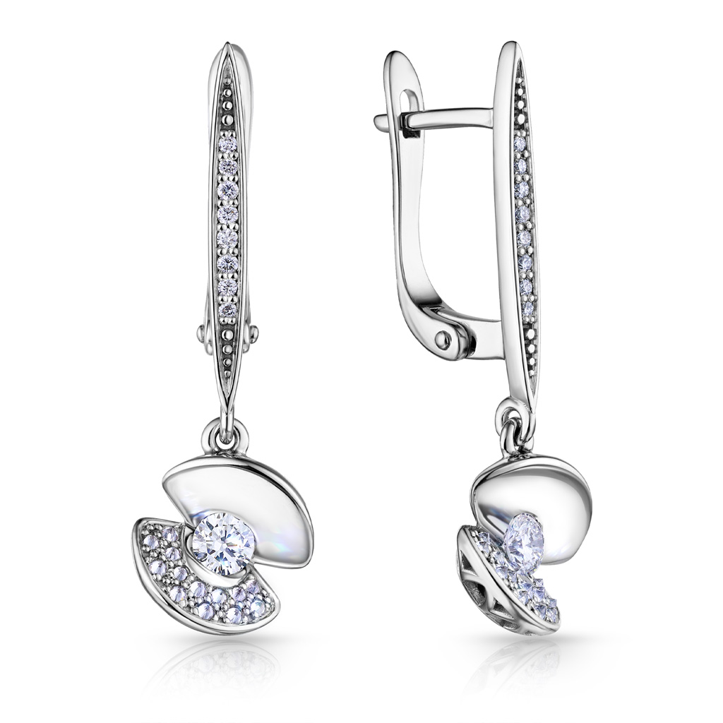 Серьги с английским замком из белого золота с бриллиантами, сапфирами, эмалью