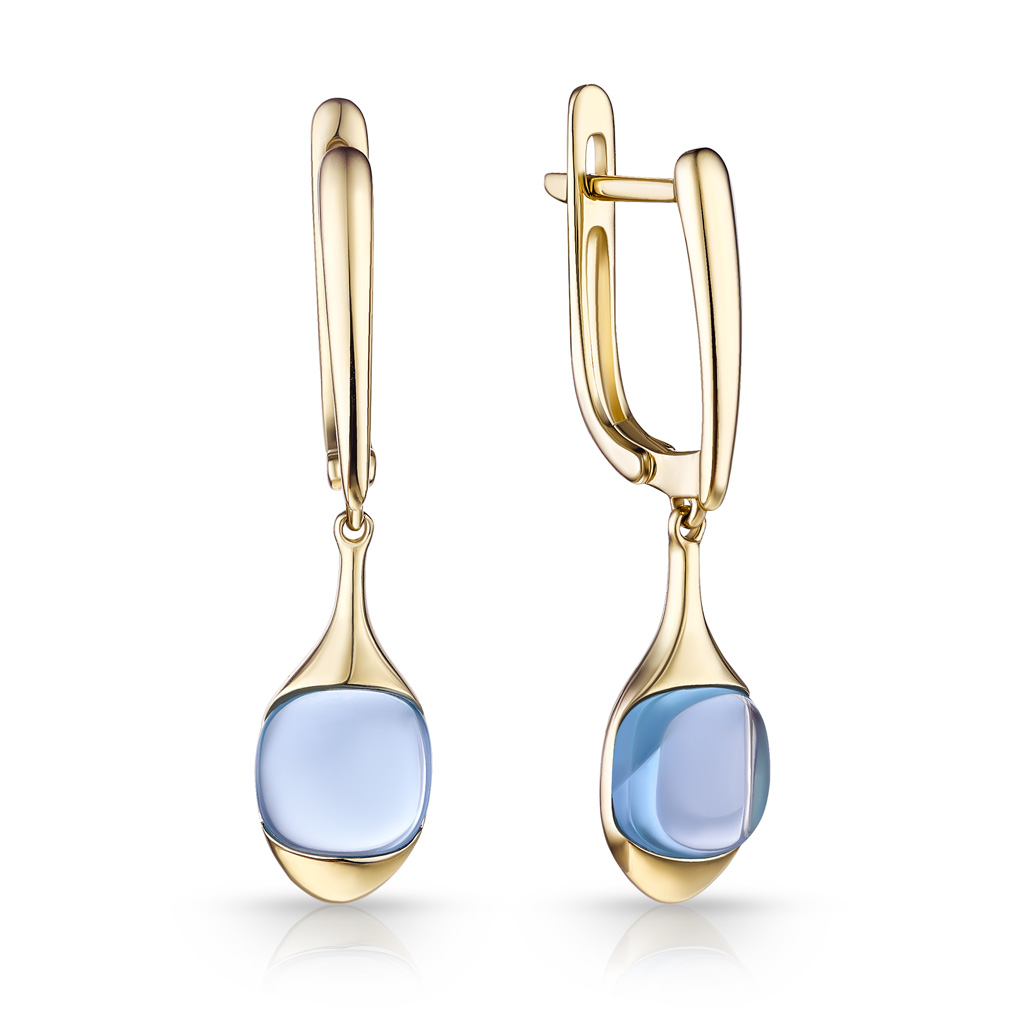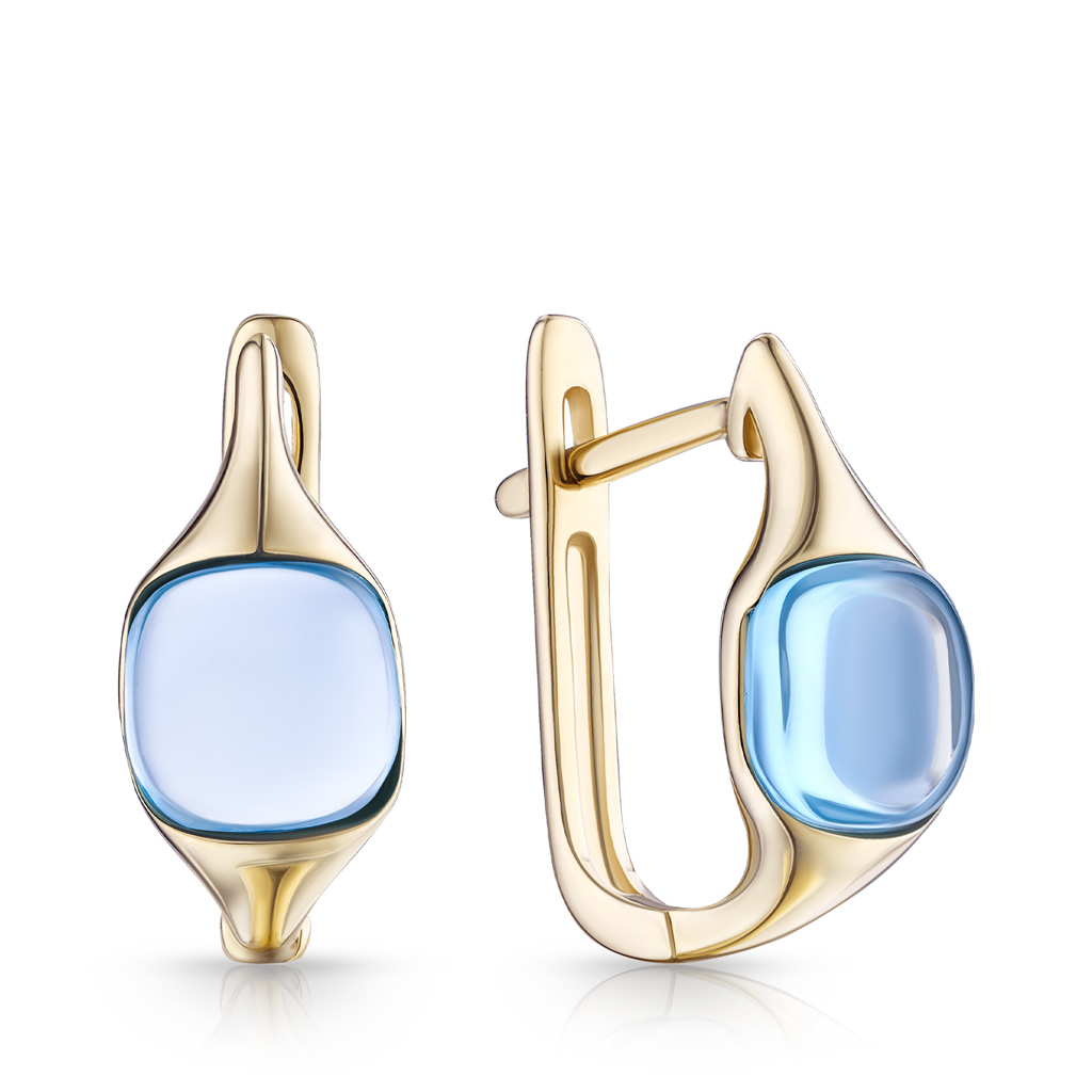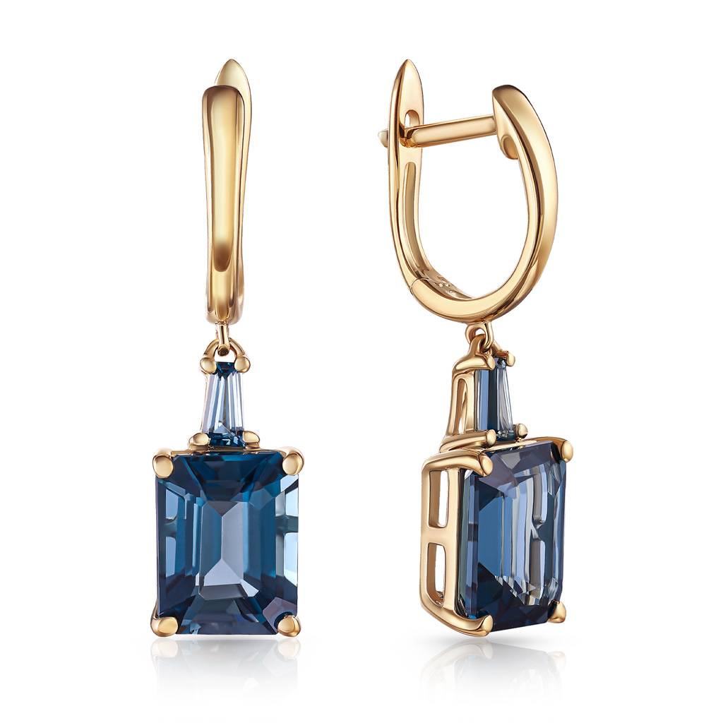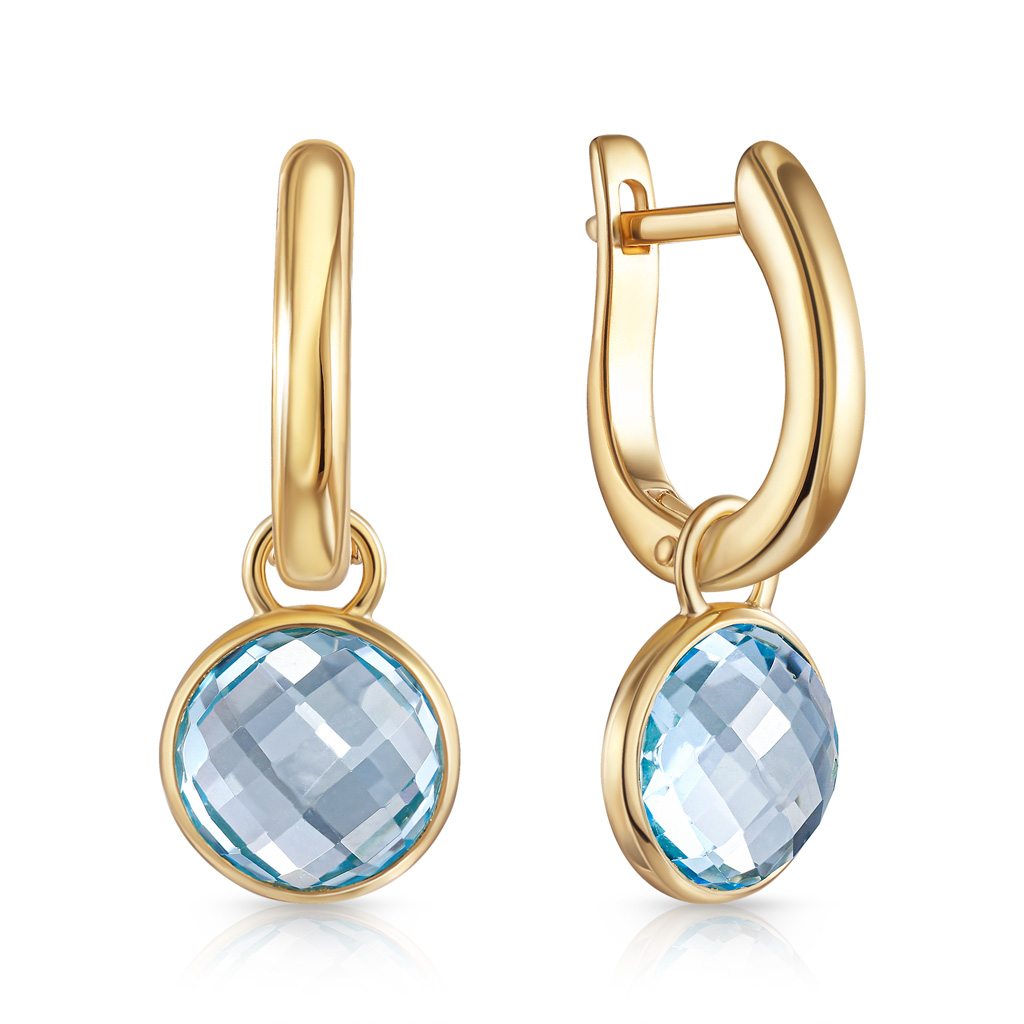 Серьги с английским замком из желтого золота с бриллиантами, топазом
