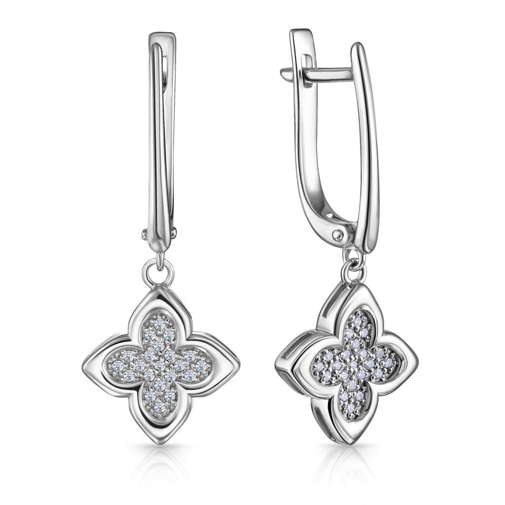Серьги с английским замком из белого золота с кварцами, бриллиантами