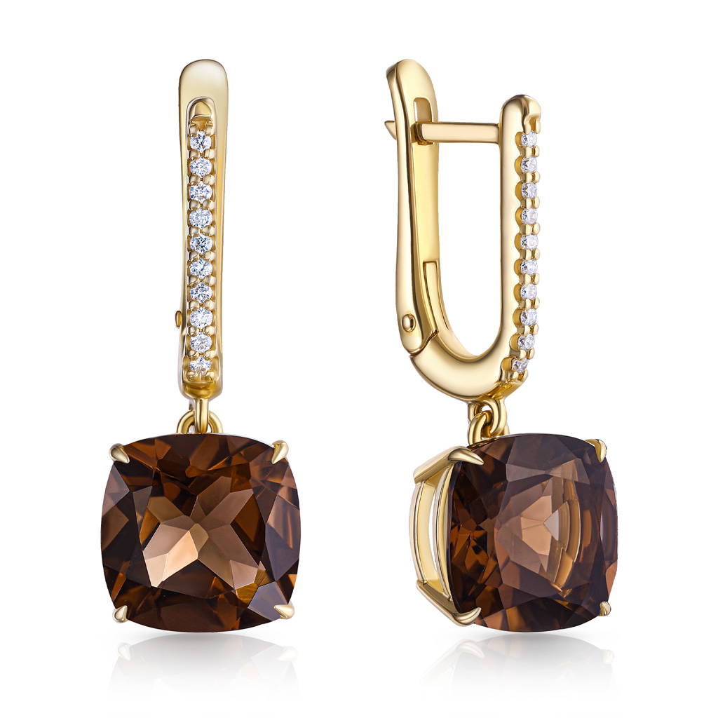 Серьги с английским замком из желтого золота с бриллиантами, цитрином