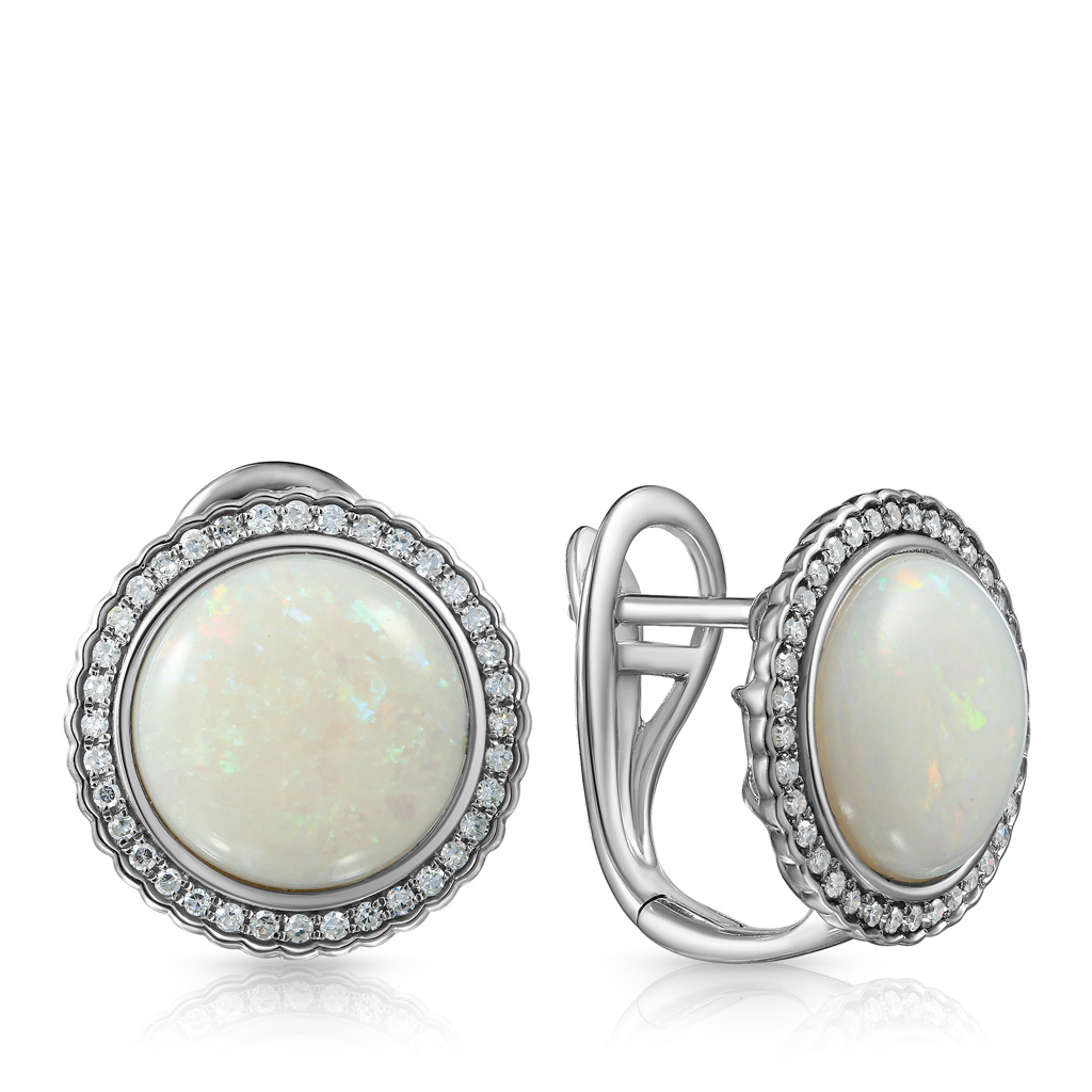 Серьги с английским замком из белого золота с бриллиантами и опали