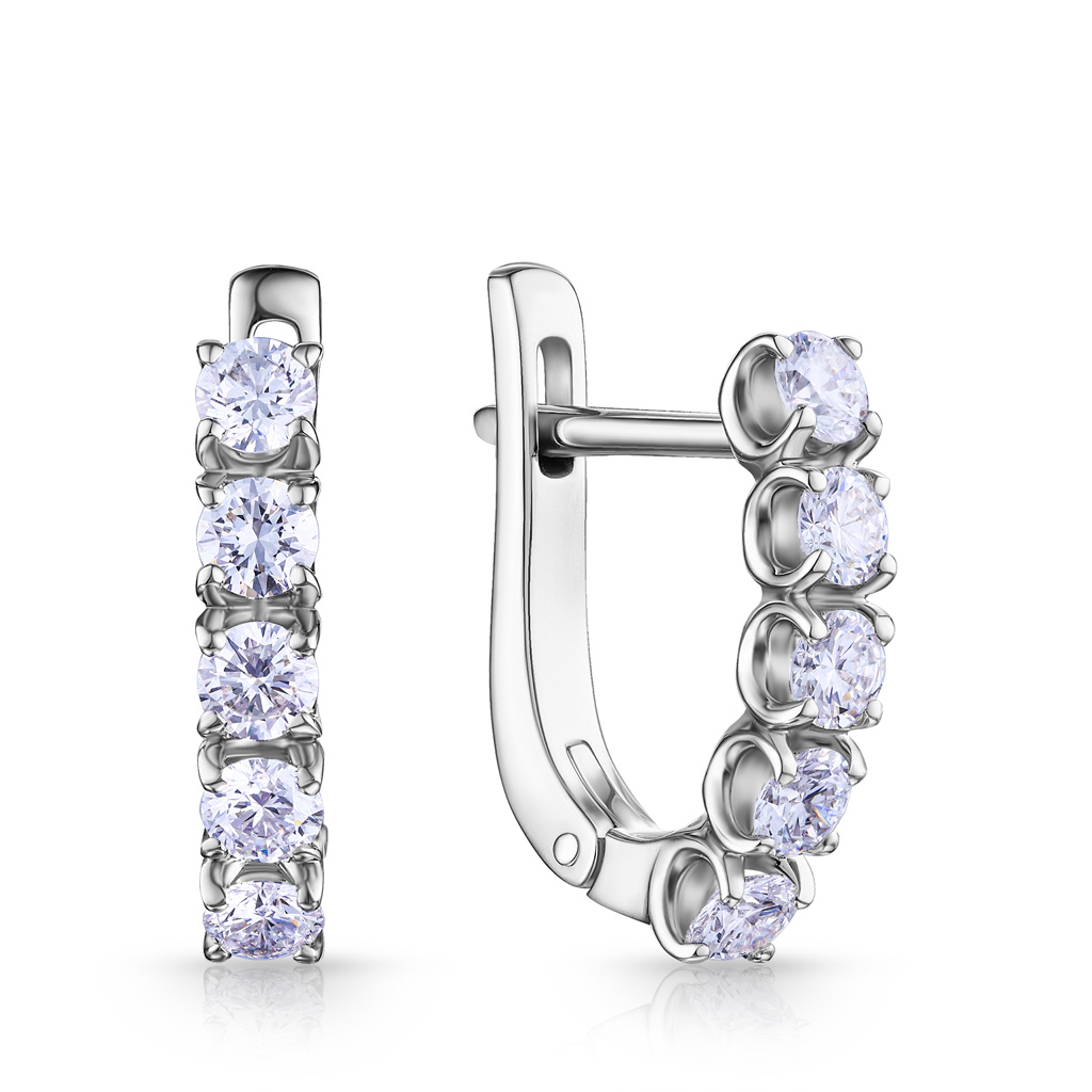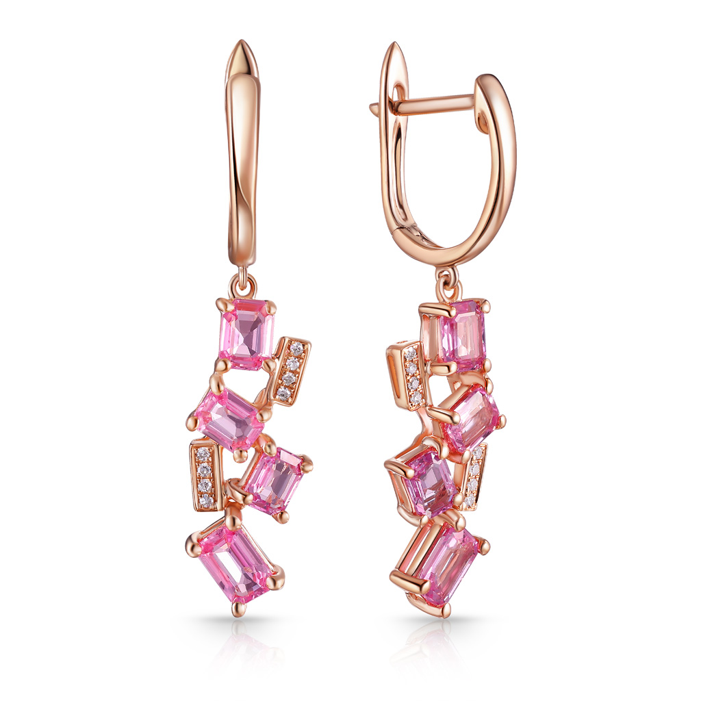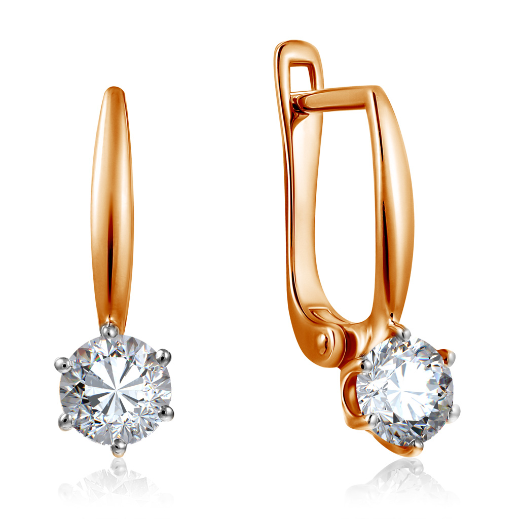 Серьги с английским замком из красного золота с фианитом