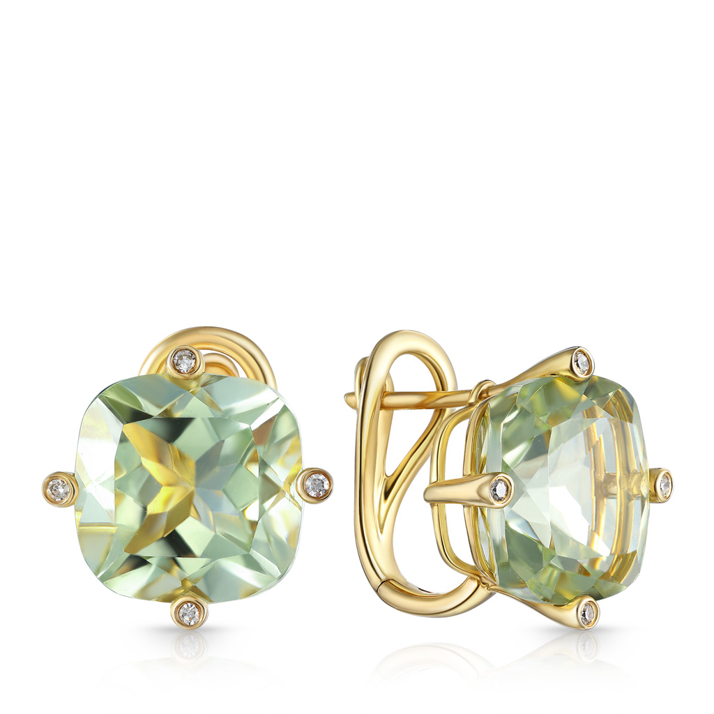 Серьги с английским замком из желтого золота с бриллиантами, аметистами