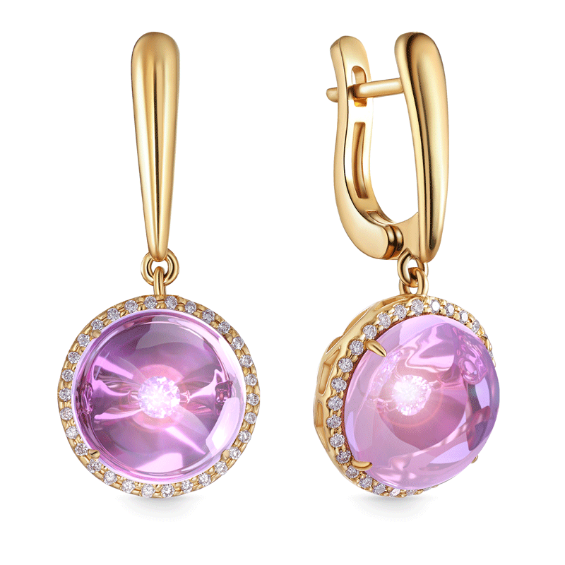 Серьги с английским замком из желтого золота с бриллиантами, тсаворитом, аметистом