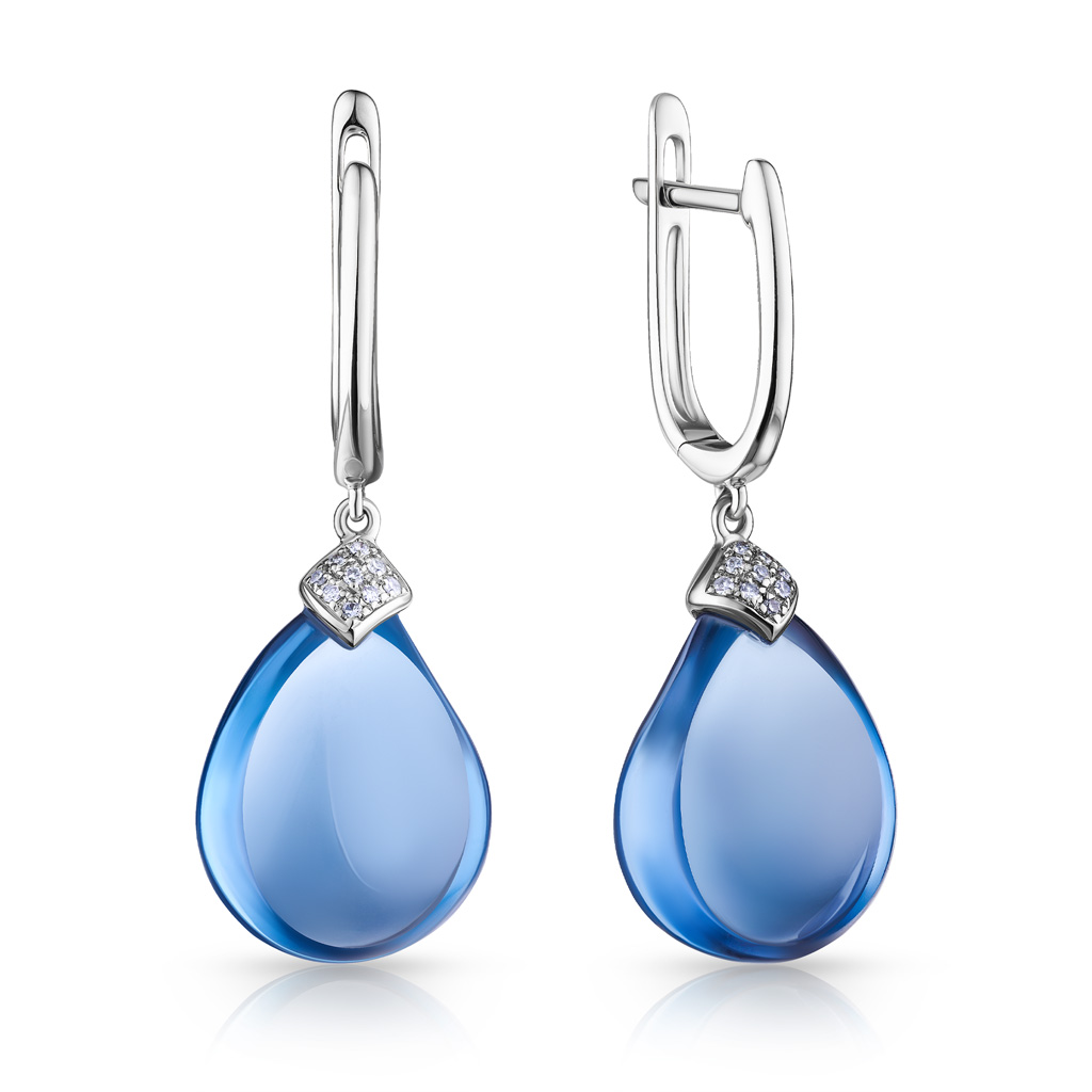 Серьги с английским замком из белого золота с топазами и бриллиантами