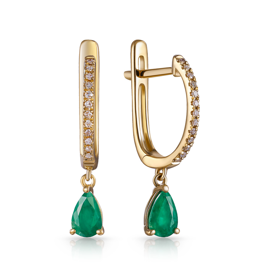 Серьги с английским замком из красного золота с изумрудами