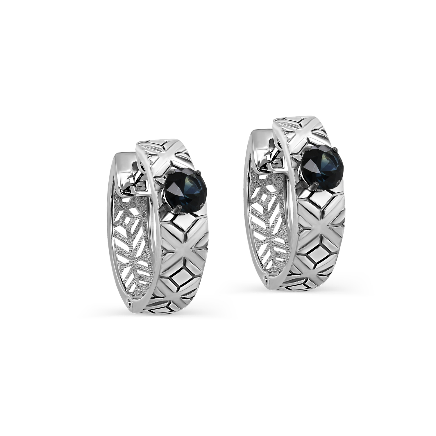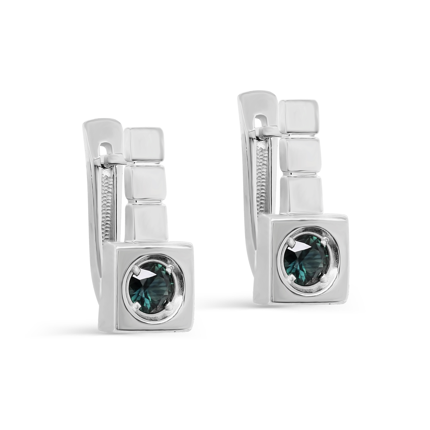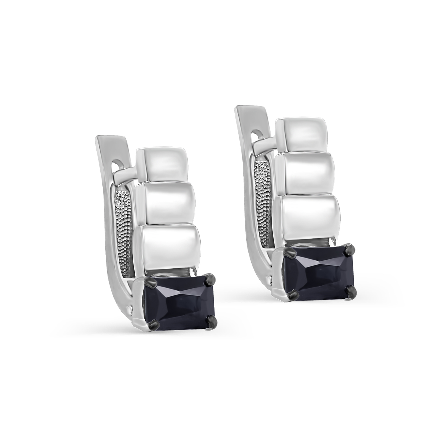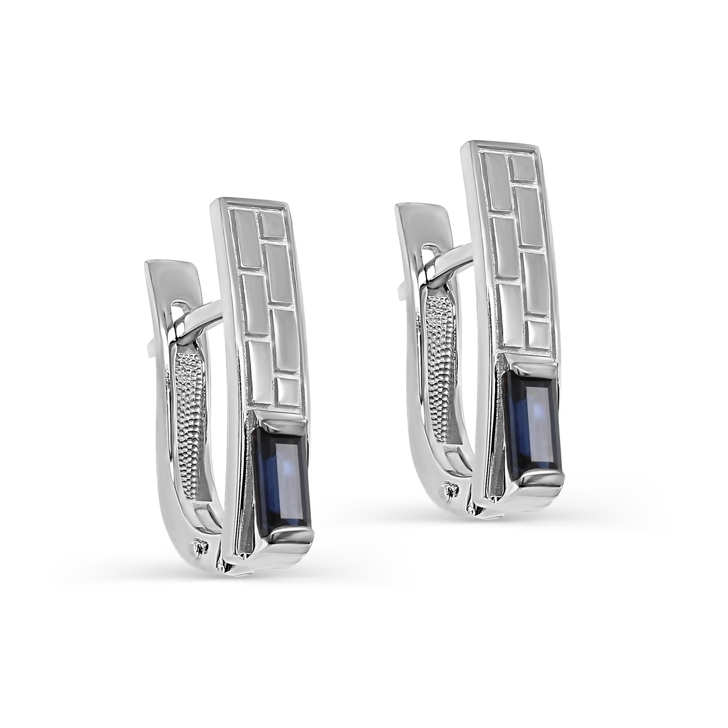 Серьги с английским замком из белого золота с бриллиантами, лазуритами