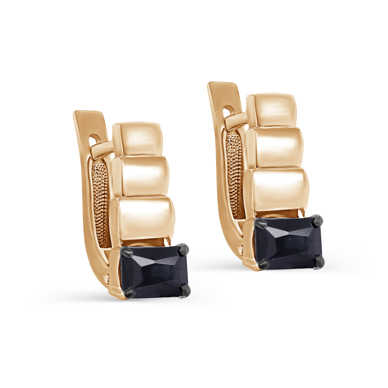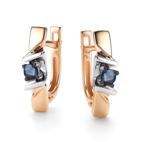 Серьги с английским замком из красного золота с бриллиантами, лазуритами