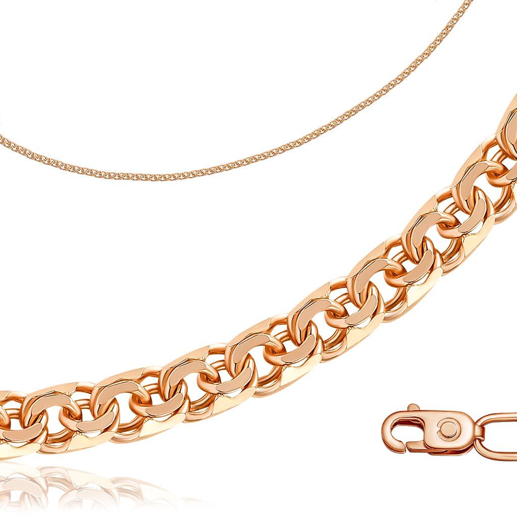 Браслет автомат из красного золота, плетение двойной ромб