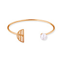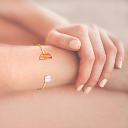 Браслет жесткий из красного золота с жемчугом