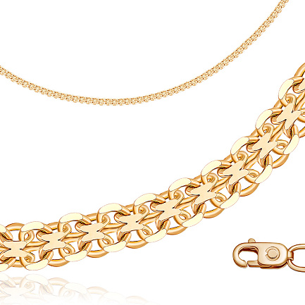Браслет автомат из красного золота, плетение якорная двухрядная бисмарк