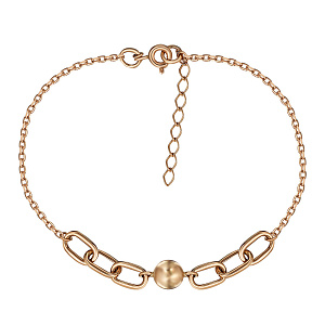 Браслет декоративный из красного золота с фианитом, плетение якорное