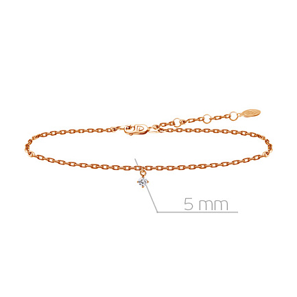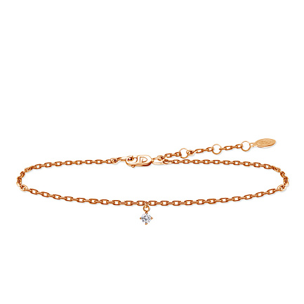 Браслет декоративный из красного золота с бриллиантом, плетение якорное