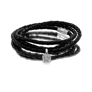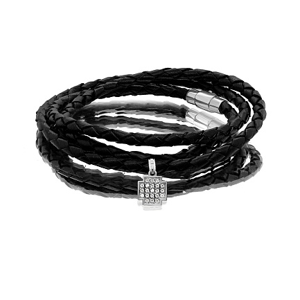 Браслет декоративный из серебра с шнуроком, магнитами, фианитами