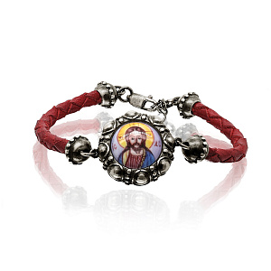 Браслет декоративный из серебра с финифтью, шнурок