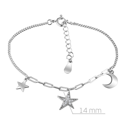 Браслет декоративный из серебра с фианитами