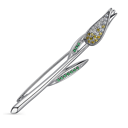 Брошь из серебра с фианитами