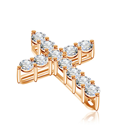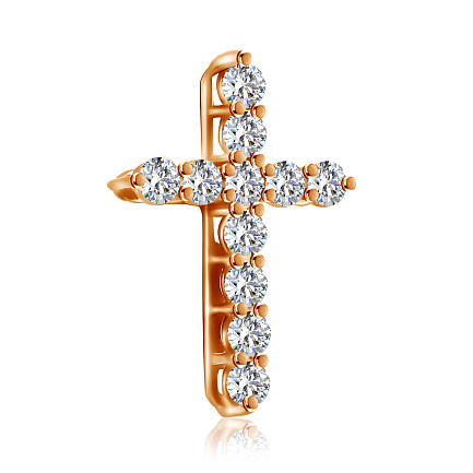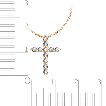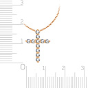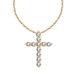 Колье с крестом выполнено из красного золота, инкрустированного бриллиантами. Элегантный дизайн аксессуара прекрасно дополнит любой образ: хрупкой и изящной леди, строгой деловой женщины, романтичной, вечно витающей в облаках, девушки. Нежный свет бриллиантов подчеркнет Вашу красоту и будет приковывать восхищенные взгляды окружающих.