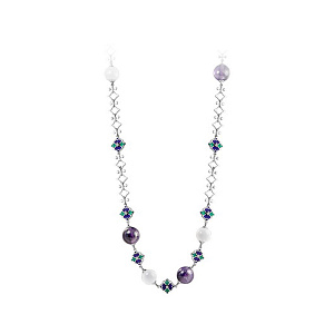 Колье из белого золота с бриллиантами, лунными, аметистами