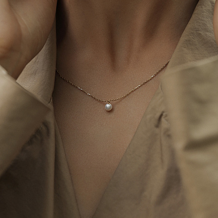Колье из желтого золота с жемчугом, плетение якорное