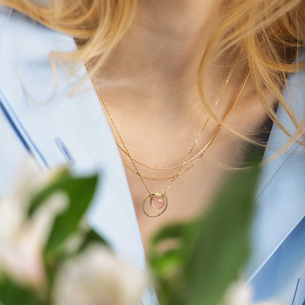 Колье из желтого золота с кварцем, плетение якорное
