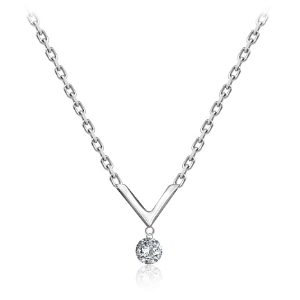 Колье из белого золота с бриллиантом, плетение якорное