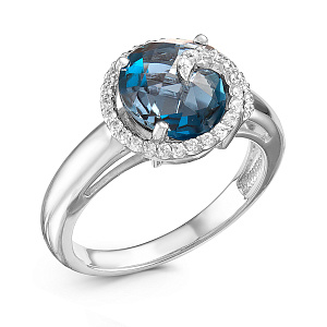 Кольцо из белого золота с бриллиантами, топазом