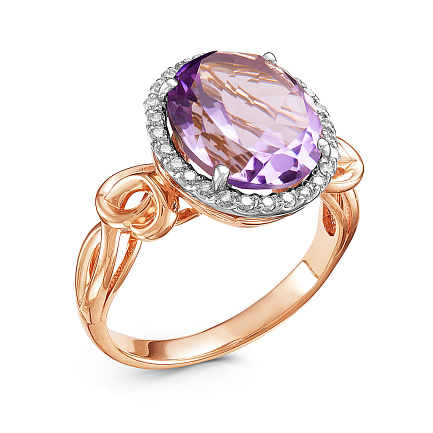 Кольцо из комбинированного золота с бриллиантами, аметистом