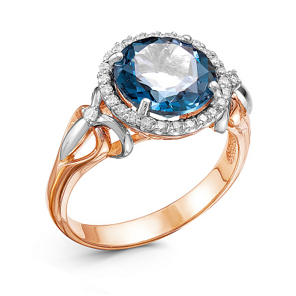 Кольцо из комбинированного золота с бриллиантами, топазом