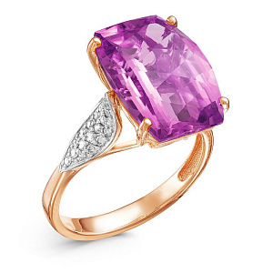 Кольцо из красного золота с бриллиантами, аметистом