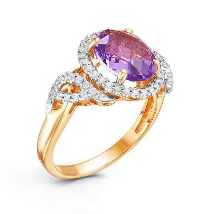Кольцо из комбинированного золота с бриллиантами, аметистом
