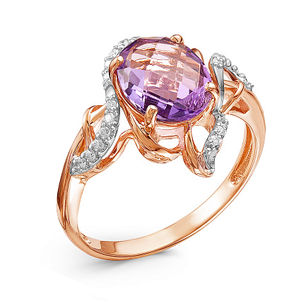 Кольцо из комбинированного золота с аметистом, бриллиантами