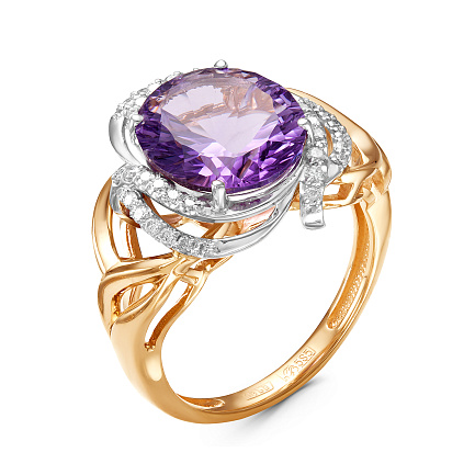 Кольцо из комбинированного золота с бриллиантами, аметистом