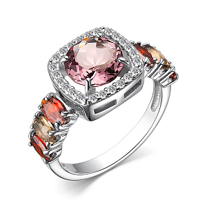 Кольцо из серебра с аметистом, фианитами