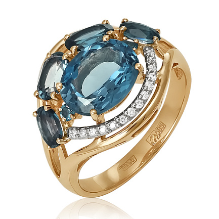 Кольцо из комбинированного золота с бриллиантами, топазами