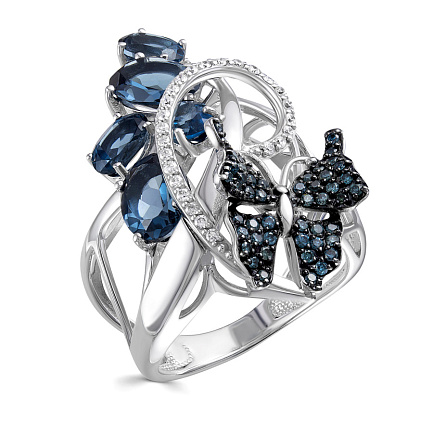 Кольцо из белого золота 585 пробы с лондон топазом и бриллиантами. Наличие размеров просим уточнять у менеджеров по телефону, указанному на сайте.