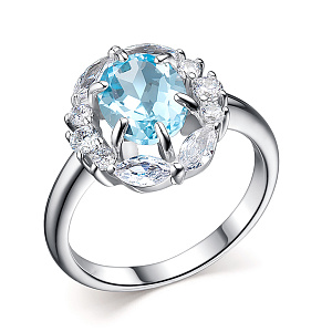 Кольцо из серебра с топазом, фианитами