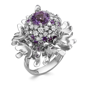 Кольцо из белого золота с бриллиантами, аметистом