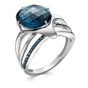 Кольцо из белого золота с лондон топазом 5х5 мм и бриллиантами. Наличие размеров просим уточнять у менеджеров по телефону, указанному на сайте.