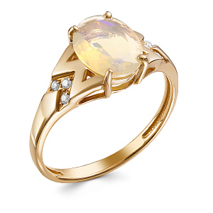 Кольцо из красного золота с бриллиантами, опалом